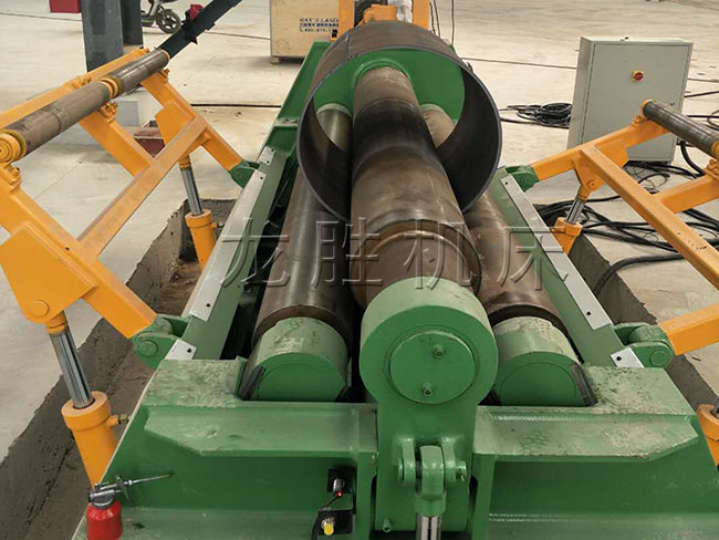 該機優(yōu)點是板材端部預(yù)彎及卷圓可以在同一臺設(shè)備上進行。